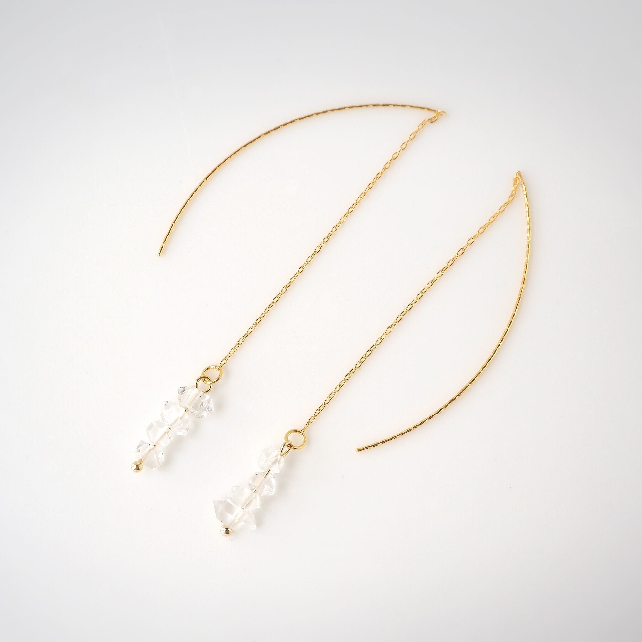 小さなハーキマーダイアモンドを使った、キラキラと輝くアメリカンピアスです。