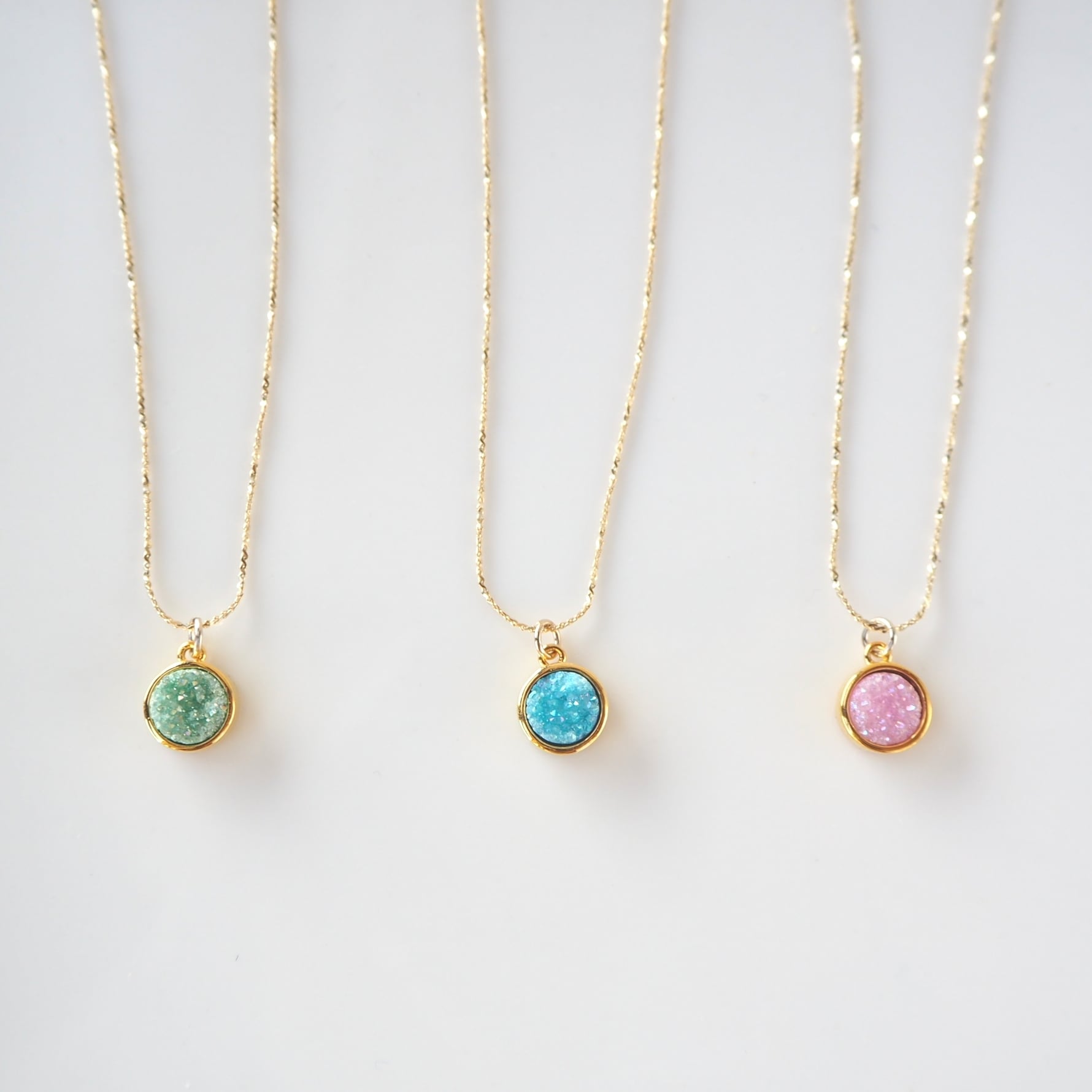 ピンク、ブルー、グリーンの天然石ドゥルージー。