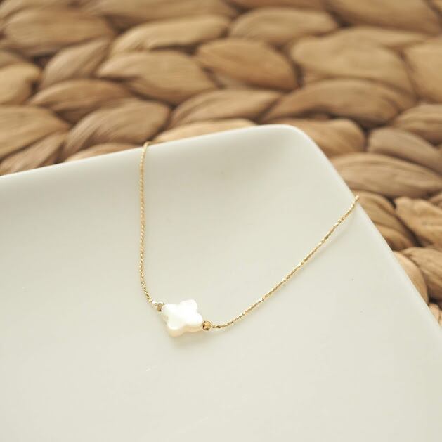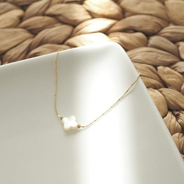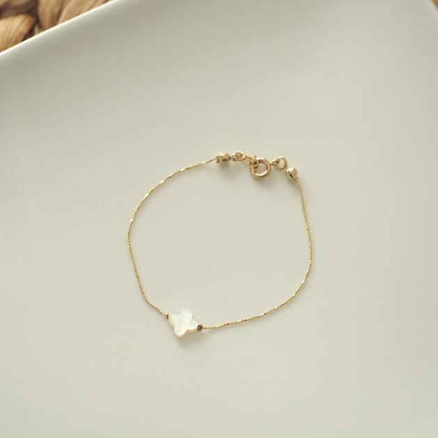 クローバーモチーフのホワイトシェルを使ったブレスレットです。